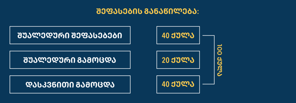 - შუალედური შეფასებები – 40 ქულა